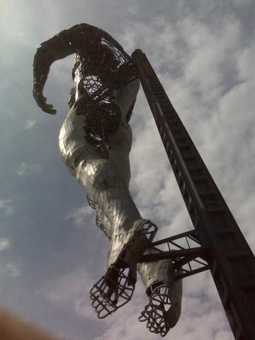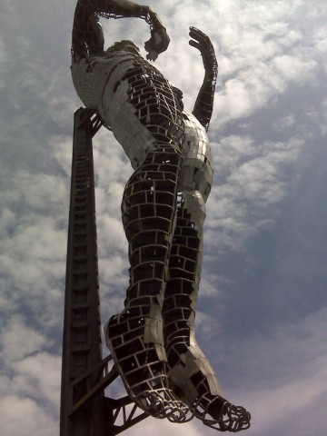 Ciudad Hidalgo, Mich., 07 de febrero de 2018. Ubicado en el crucero de la salida a Zitácuaro y Maravatío, se encuentra el monumento al trabajo, una obra monumental del escultor Gonzalo Beltrán. Realizado en hierro forjado en su totalidad y con una altura de 14 metros, este monumento pretende ser una lectura de la ciudad, un homenaje al trabajo cotidiano de los que habitamos en esta ciudad. La escultura parte de un concepto inherente de nuestros pobladores, una figura totalmente desnuda e inacabada, que se coloca un pedazo de si mismo en el pecho, una lectura del contexto y habitantes que me parece acertada, ya que somos una sociedad “a medias” y nos falta mucho por hacer y construir, estamos en el proceso de autoconstrucción. |